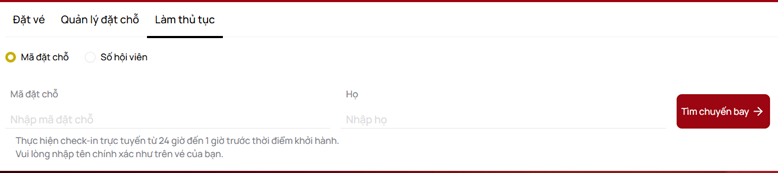 Nhập Mã đặt chỗ và Họ của một trong số những hành khách tham gia chuyến bay.